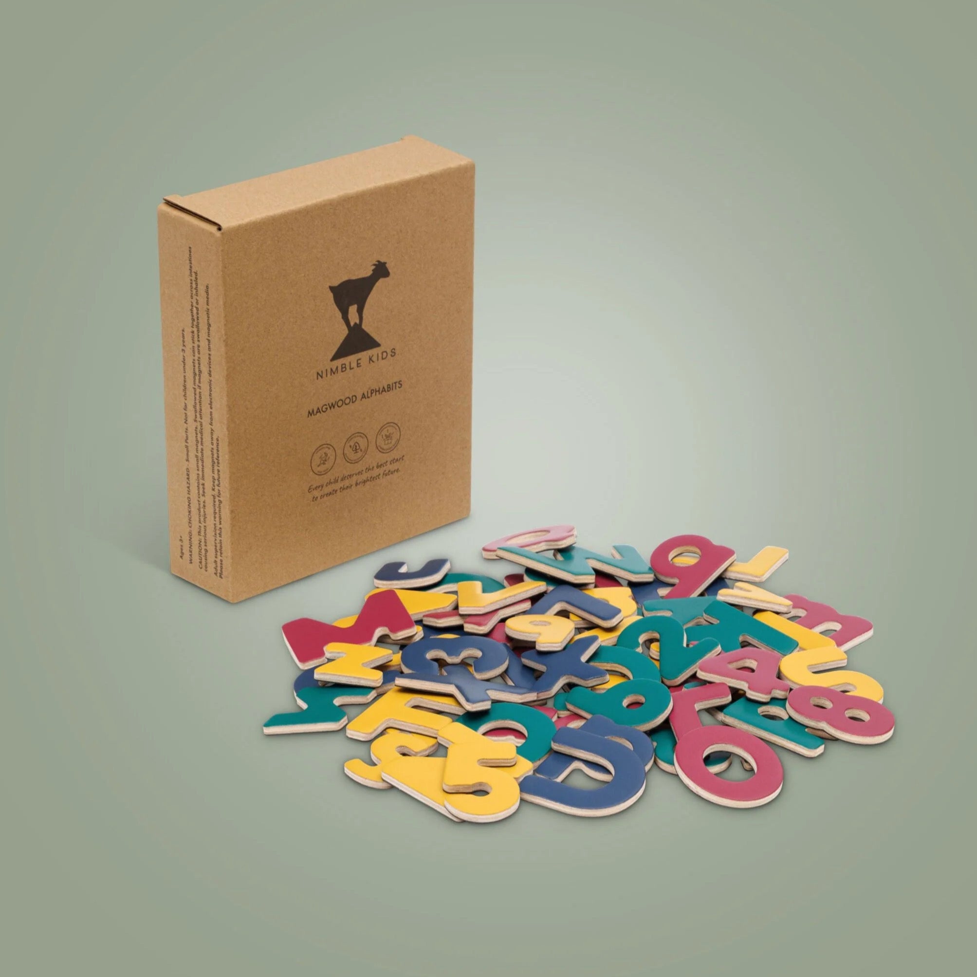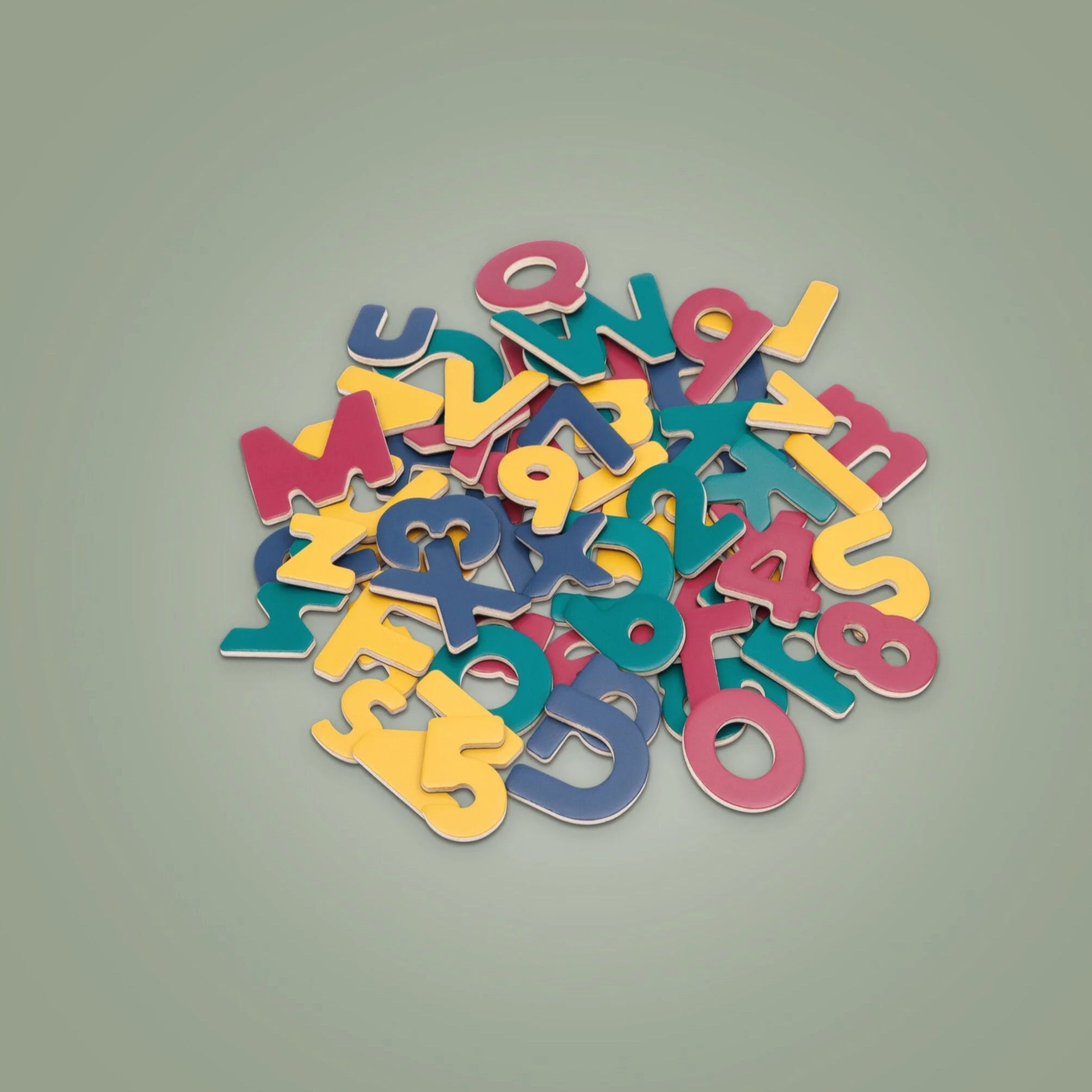 62 piece montessori-inspired educational, magnetic letters for early learning and creative play.