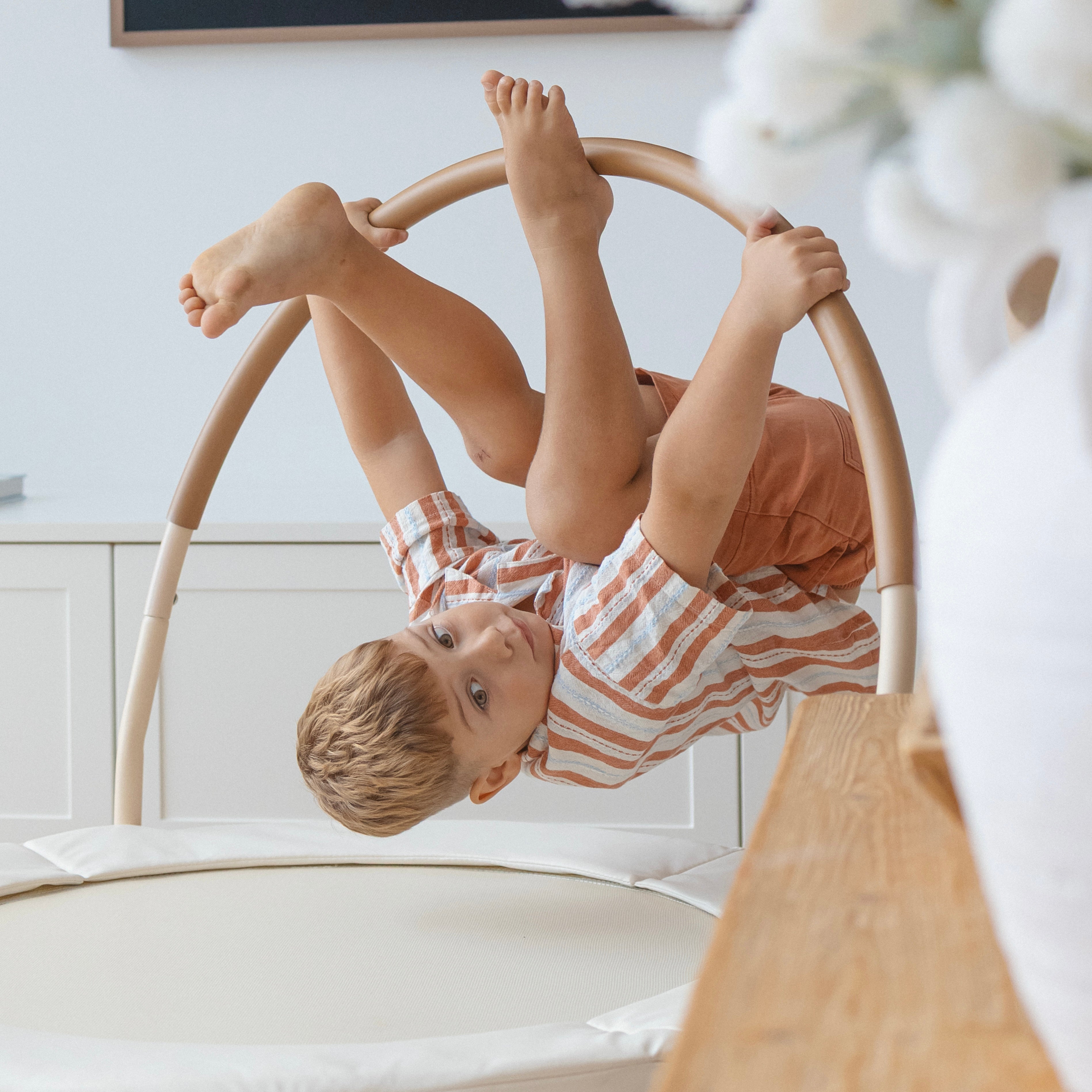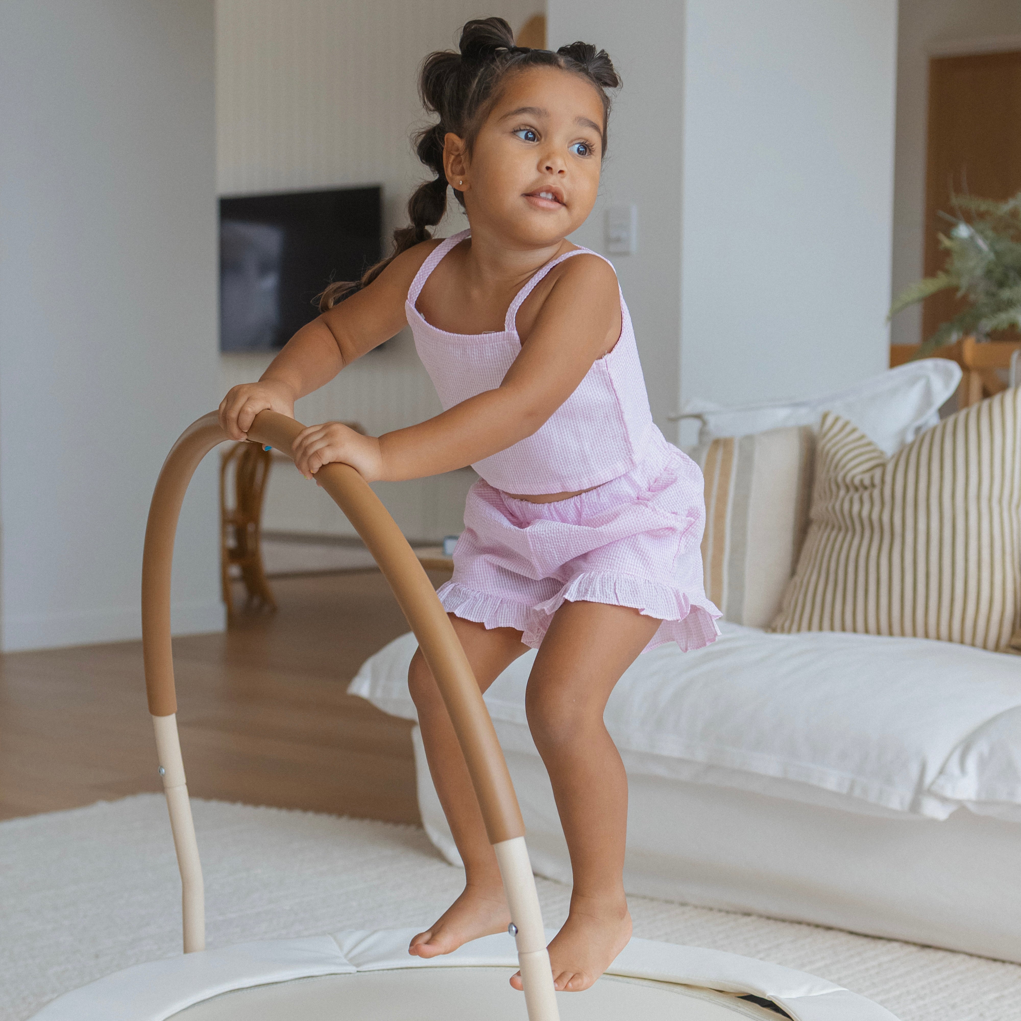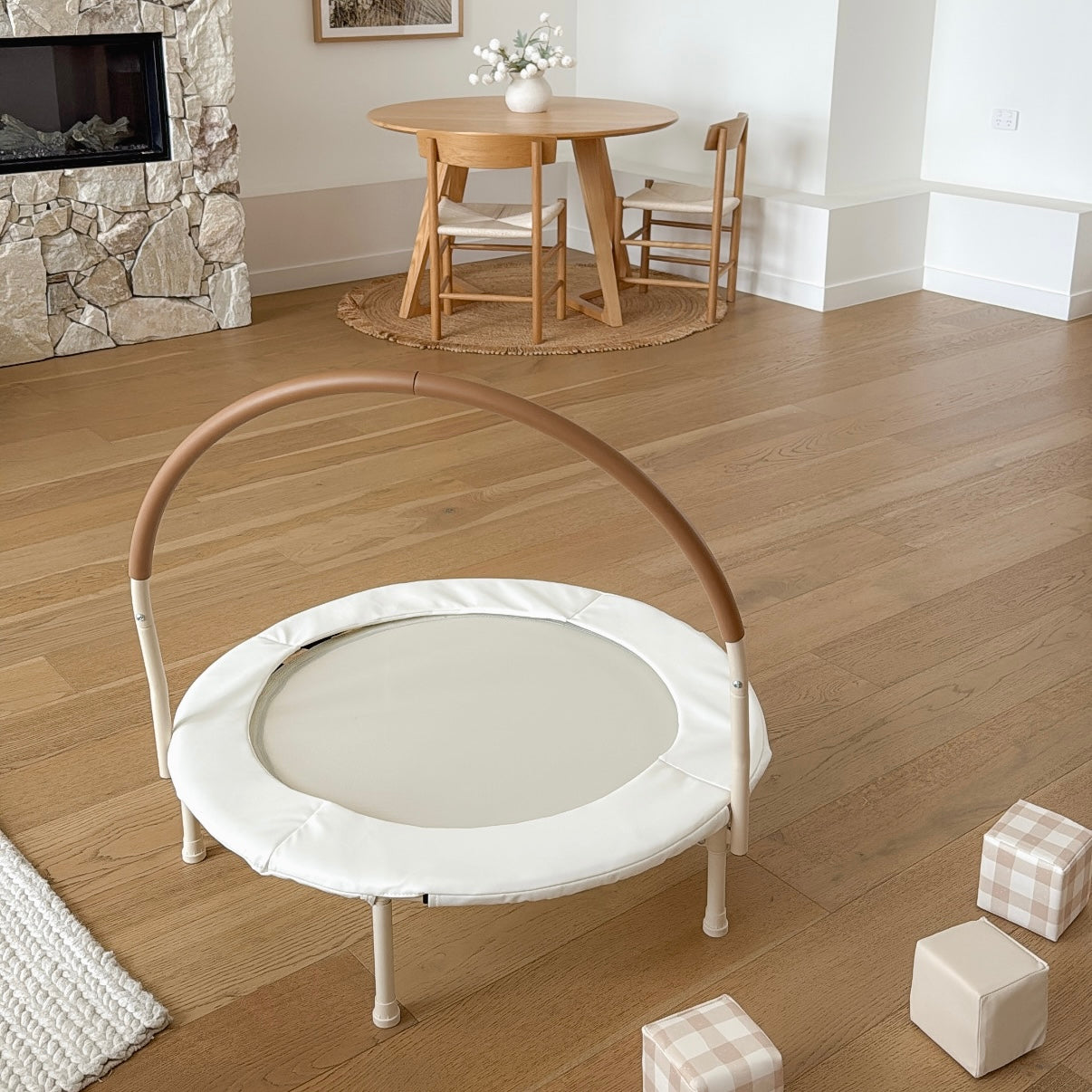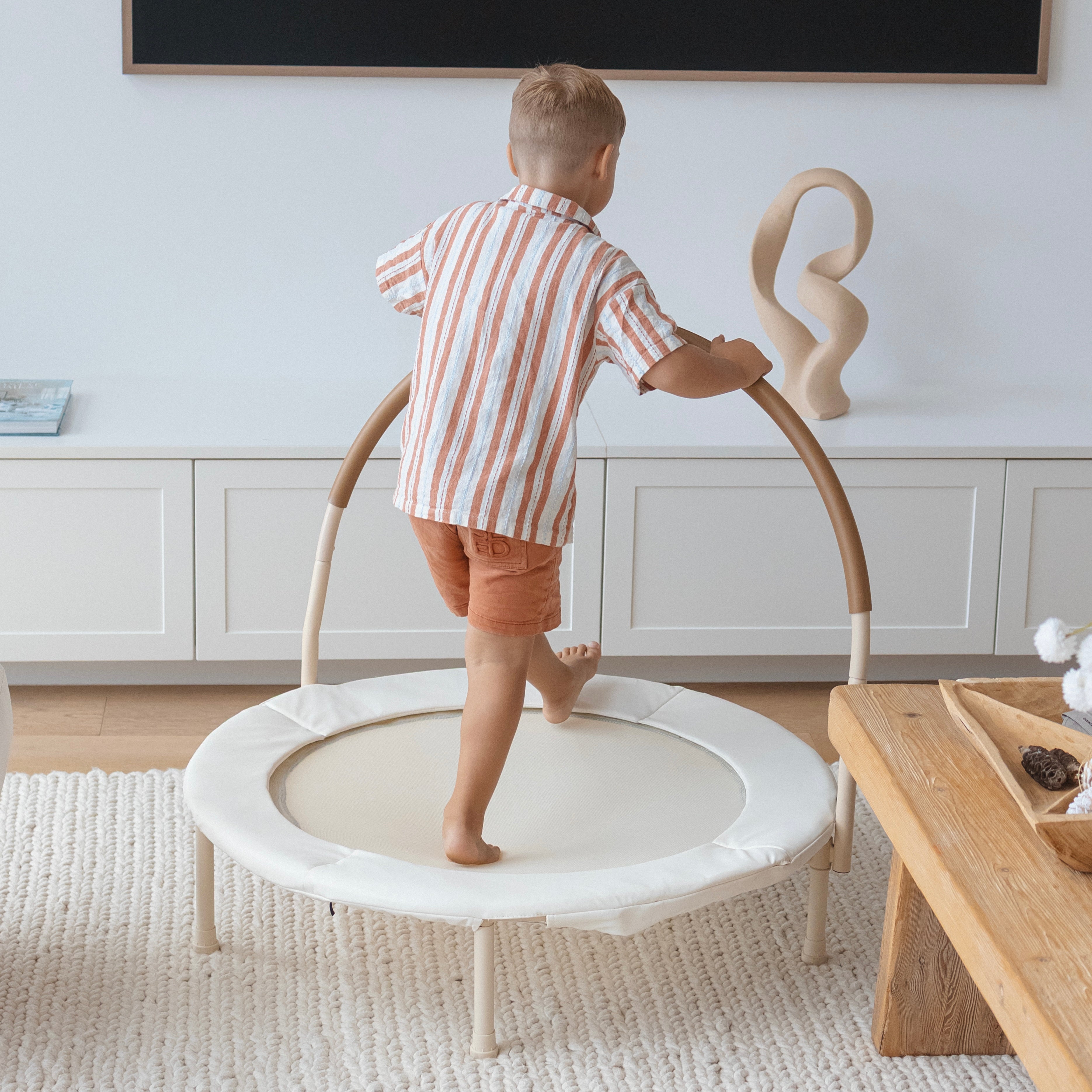 Designed for everyday movement in little bodies, the Bounce & Play Mini is a beautifully minimal indoor trampoline created to support balance, coordination, and confident gross-motor play.